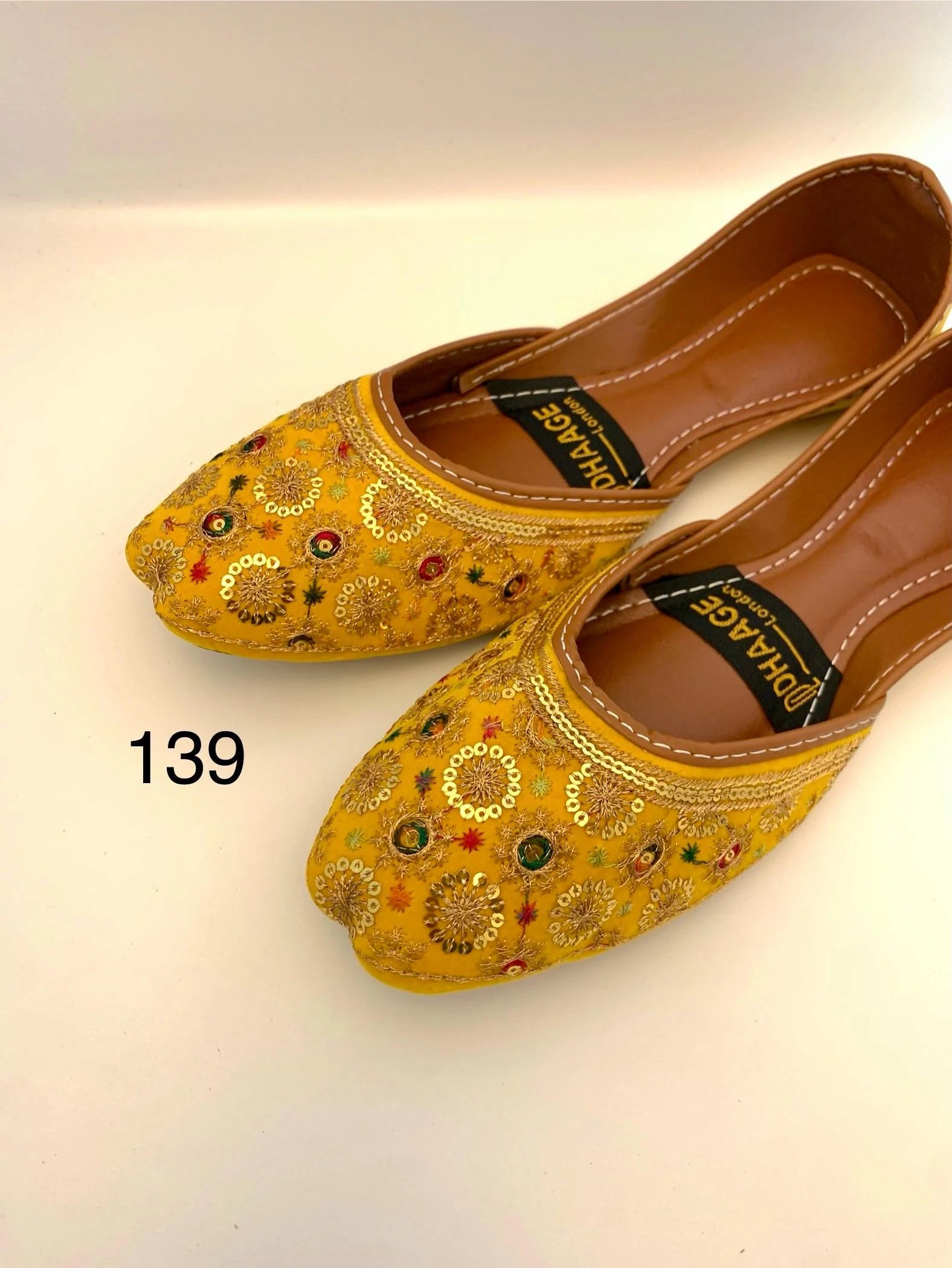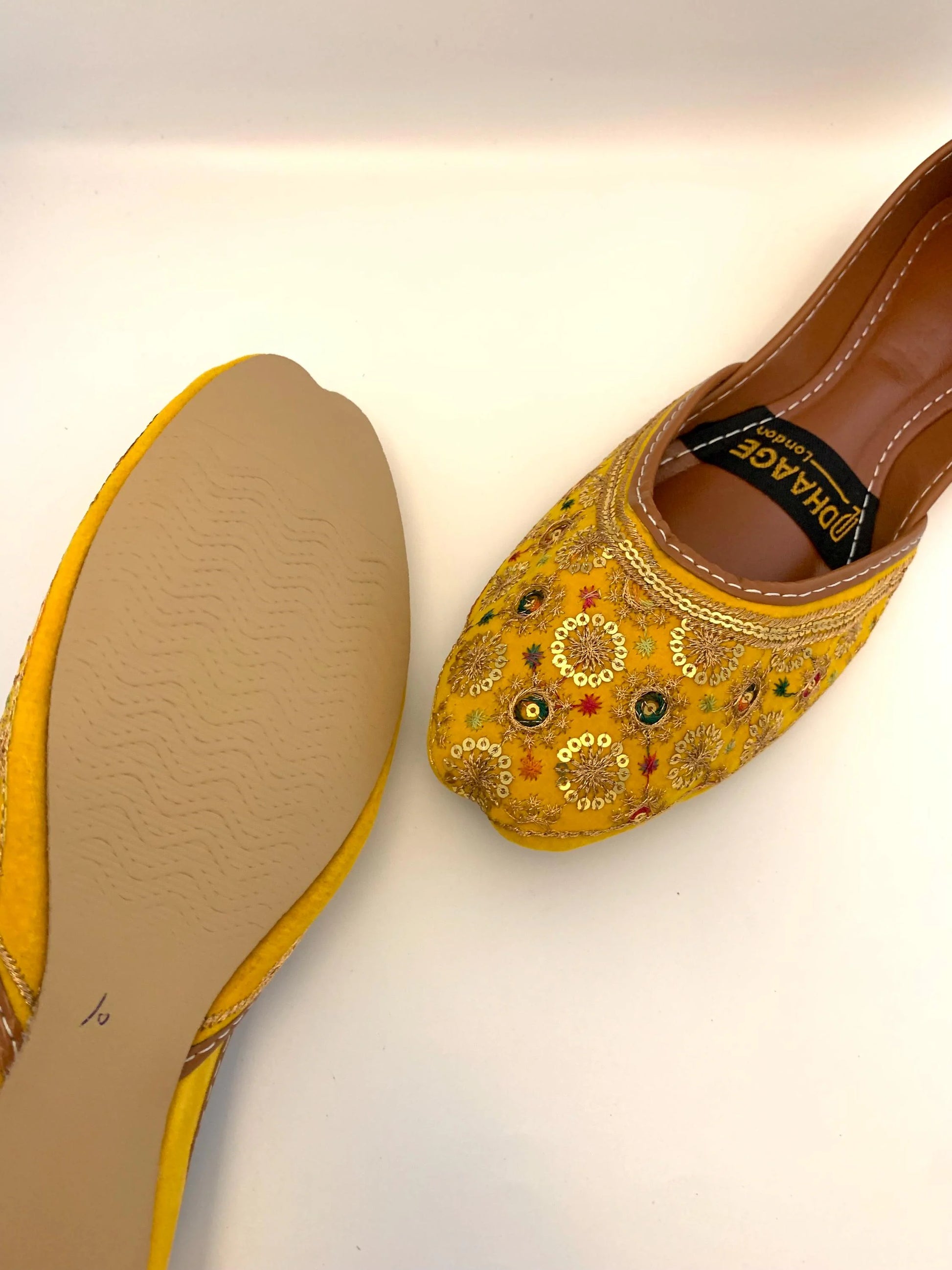 139-Handmade Women’s Yellow Khussa – Traditional Jutti – Available size: UK 4,5,6