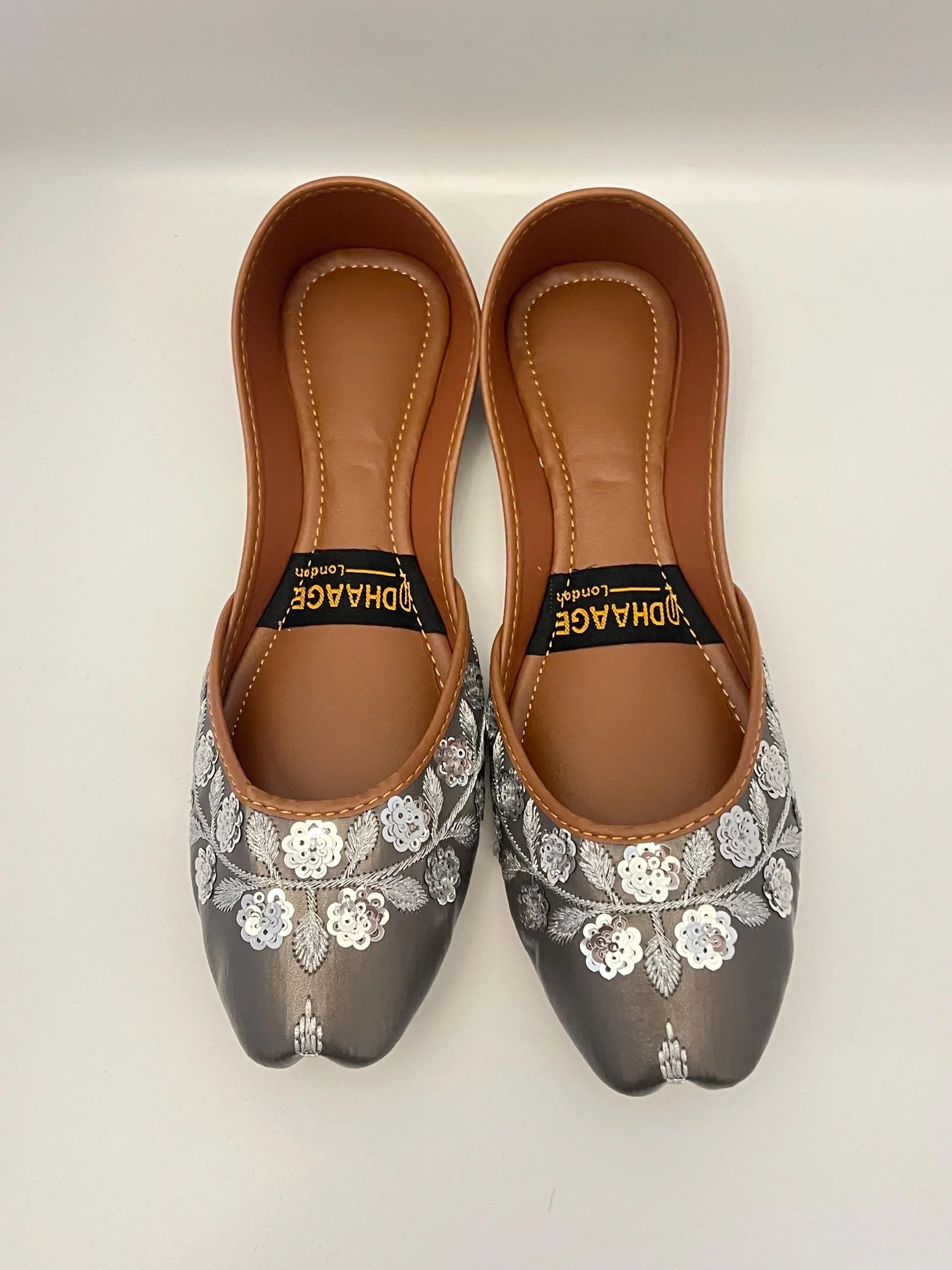 190-Handmade Women’s Grey Khussa – Traditional Jutti – Available size: UK 4,5,7,8
