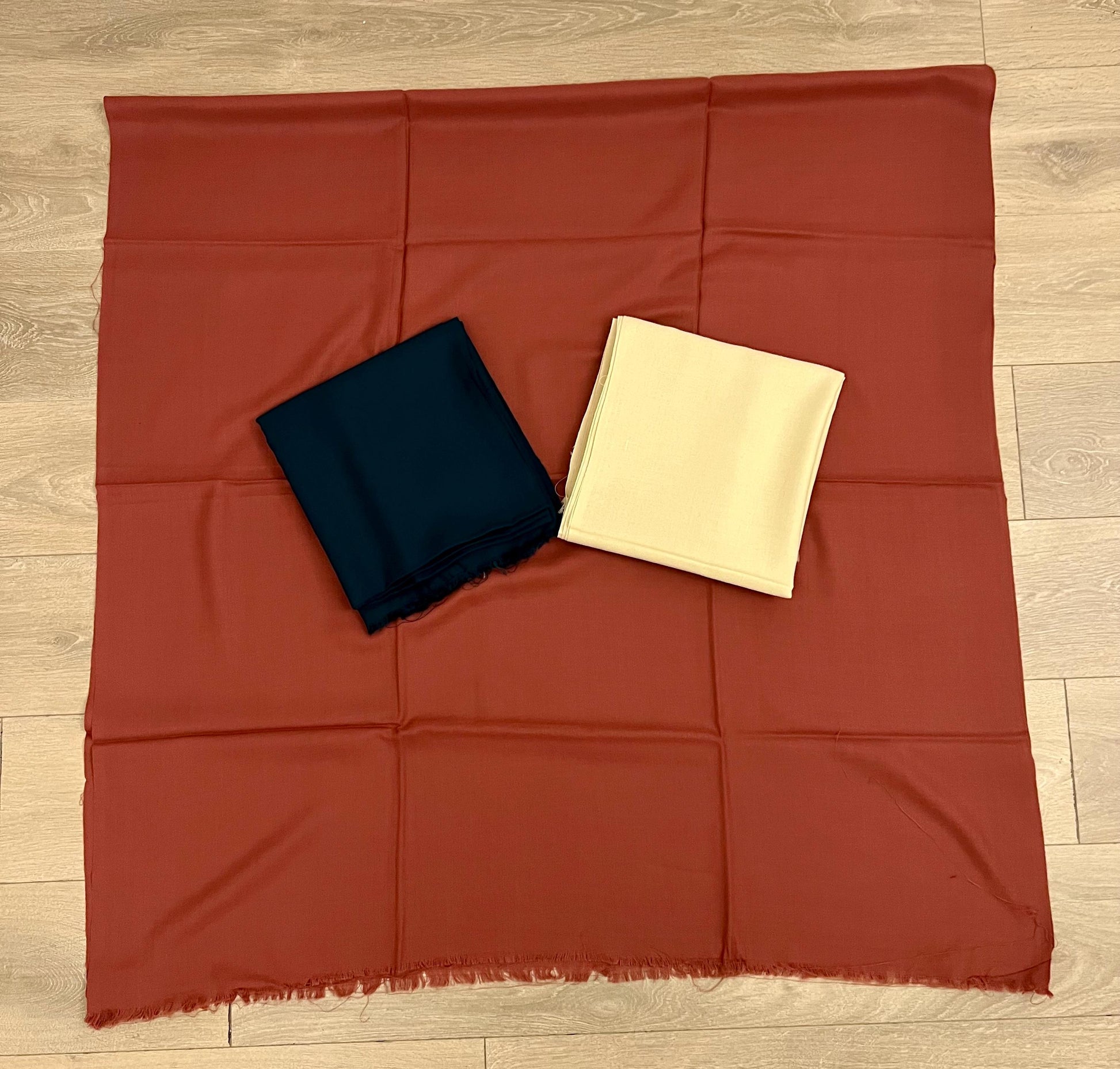 Due to variations in screen settings and display calibration, colours may appear slightly different from the actual product. These minor variations do not affect the quality or overall appearance of the shawl.